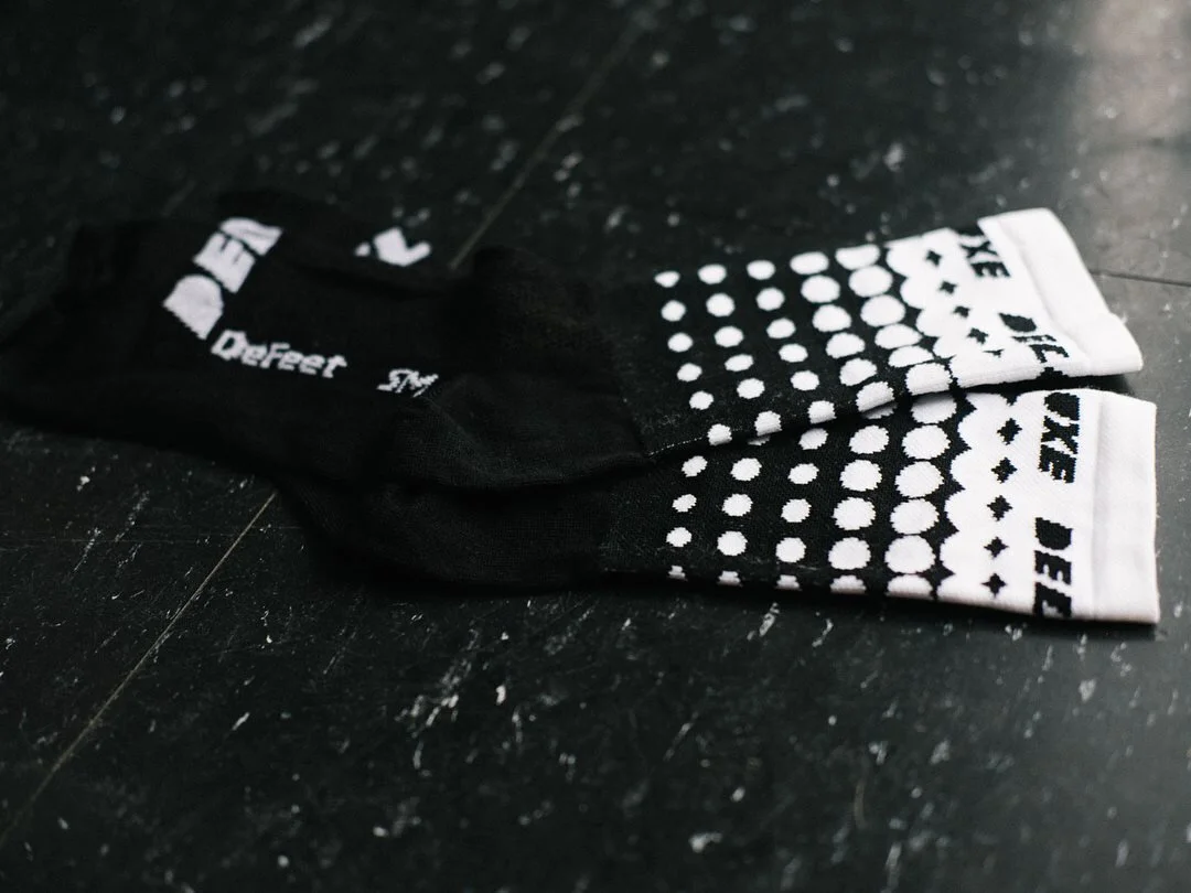Deluxe Cycles approached me with another retail project inspired by a dot gradient pattern and wanted to create a retail capsule for the collection. We partnered with multiple companies including DeFeet, Giro, Ritchey Logic and Stem Caps to create the products.